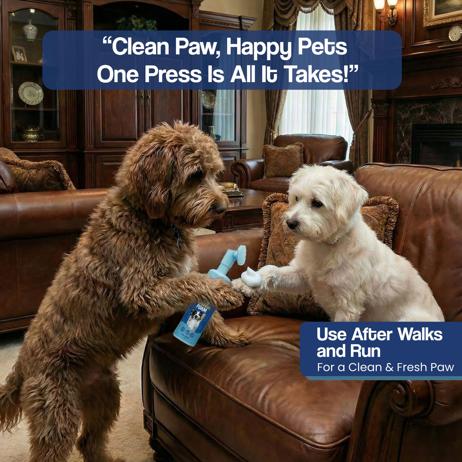 Espuma limpiadora para patas de perro: fórmula hidratante y resistente al lamido con cabezal de cepillo incorporado